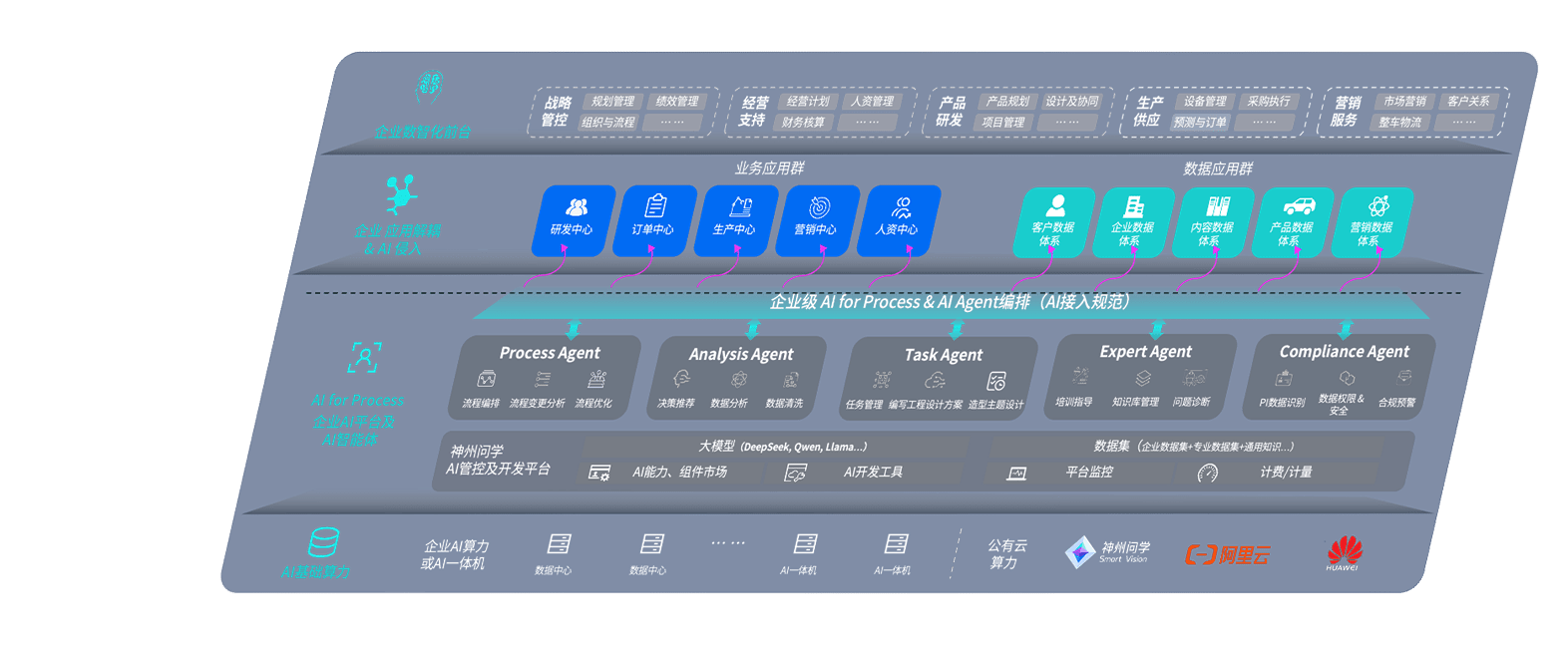 端到端的一站式AI工作空间深度融合了从企业战略规划到日常经营的全流程业务板块,,定向解决车企内部领域多、、、部门多、、、、链条长、、、场景碎片化等难题,,,支持车企快速构建以AI为核心的生产力写作体系,,实现任务执行与AI能力的无缝集成与交互